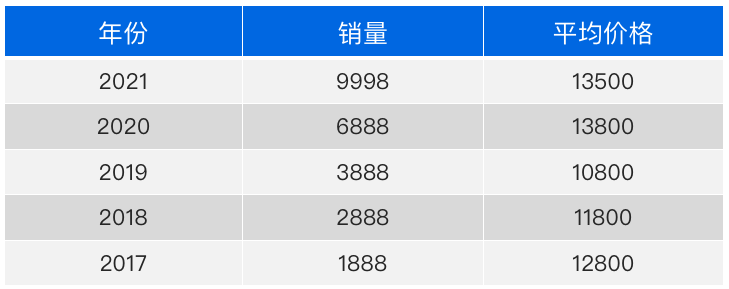 比如,目前某个产品经理所在公司主要售卖数码家电类产品,下面的表格是产品大佬设计的电商平台截止目前电脑的销量与价格的数据表格,预测2022 ~ 2026年电脑的平均价格会以3%的速度逐年递减,请基于下面的表格,预测接下来的2022 ~ 2026年电脑的销量应该为多少?